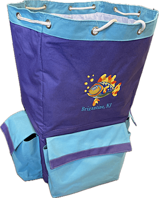 Our BeachPacks are designed with you in mind! Made from mildew resistant polypropylene in a variety of fun colors, these bags have lots of pockets both inside and out to help you organize your items. With their flat bottoms and sturdy fabrics, our bags will stand upright and open for easy packing and unpacking, but also fold flat for storage and transport. The padded, adjustable carry straps on the back provide convenient back-pack style transport. All bags are fully lined with a drawstring closure.
