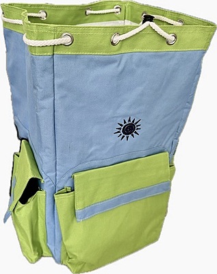 (9.5 x 9.5 x 18 in)Our smaller version of the BeachPack, is a great bag for individuals, couples or kids heading to the beach, pool or lake. The BeachPack is Loaded with lots of pockets inside and out to organize all your smaller items, including a convenient key holder. With its flat bottom design and sturdy fabrics, Beachpack will stand upright and open while you pack and unpack your larger items, but still folds flat for storage and transport. Drawstring closure. The backpack feature makes it so comfortable to carry too with the padded, adjustable straps! Made from mildew resistant polypropylene, and fully lined.