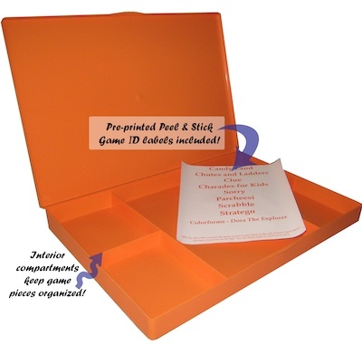 Made from sturdy, recyclable plastic material right here in the USA, they simply won't break apart like those flimsy board game cardboard boxes. Recessed dividers inside the containers help keep the game pieces organized, and leave room for the game boards to sit on top. Game Savers even come with handy pre-printed labels to neatly and easily identify the game stored inside. Never again will you have to deal with those ugly broken boxes, messy contents or missing pieces. Game set up will be a breeze!