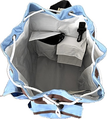 MINI BEACHPACK in Earth and Sky, embellished with our famous sun spiral. LIMITED STOCK!