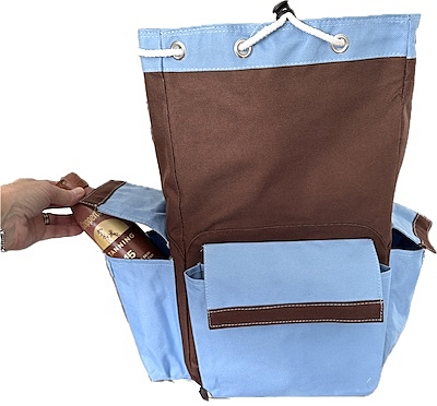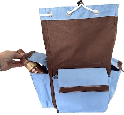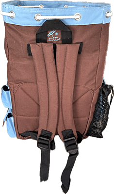 MINI BEACHPACK in Earth/Sky. (9.5 x 9.5 x 18") BeachPackMini is the best bag for the beach, pool or lake. Loaded with pockets inside and out to organize all your things, including a key holder, a flat bottom so it stands upright and open while you pack and unpack, and a drawstring closure. This mini size can easily hold 2-3 beach towels and is ideal for individuals, kids and couples. The backpack feature makes it so comfortable to carry too with the padded adjustable straps! Made from mildew resistant polypropylene, and fully lined.