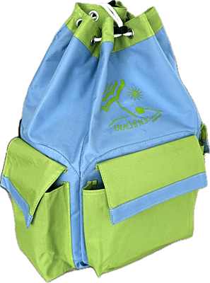(9.5 x 9.5 x 18") BeachPackMini is the best bag for the beach, pool or lake. Loaded with pockets inside and out to organize all your things, including a key holder, a flat bottom so it stands upright and open while you pack and unpack. This mini size can easily hold 2-3 beach towels and is ideal for individuals, kids and couples. The backpack feature makes it so comfortable to carry too! made from mildew resistant polypropylene, and fully lined. Drawstring closure.